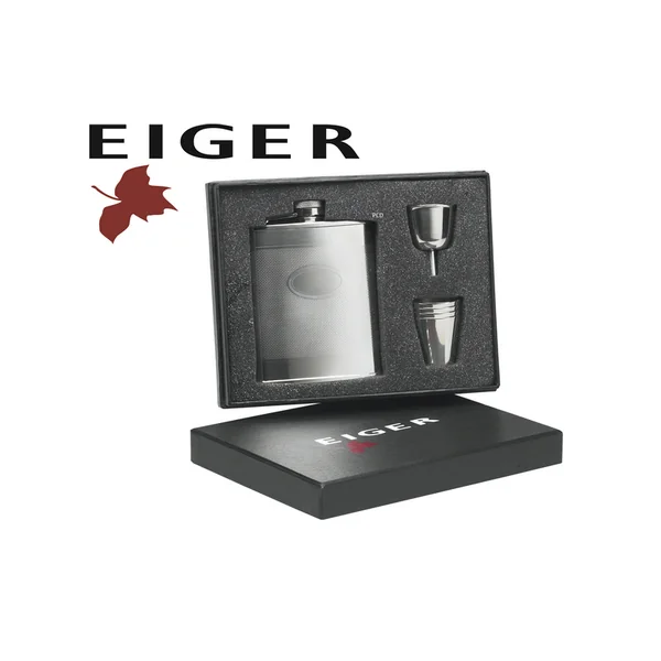 Flasque Et 4 Verres Inox Eiger Silver Hip Flask Gift Set