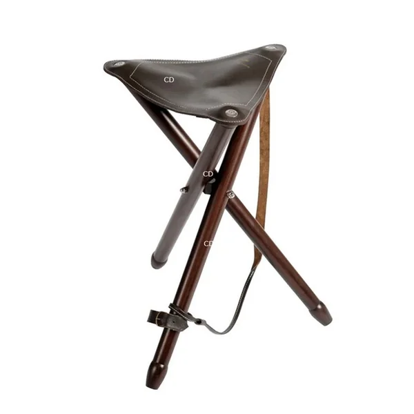 Trépied Bois Januel Dessus Cuir Haut 70cm Fabrication Française