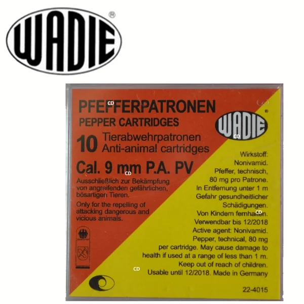 Cartouches Wadie 9mm PA PV Pepper A Gaz Par 10