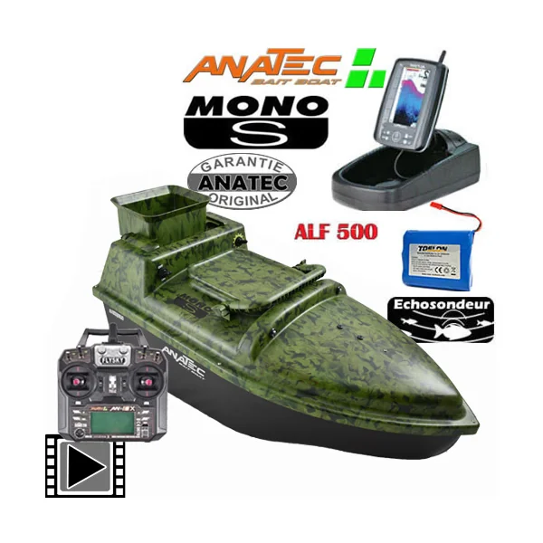 Bateau Amorceur Anatec Monocoque 3B OAK Litium Brushless DE-SR07 + Support et Amplificateur Deeper