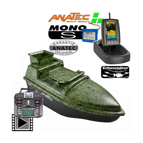 Bateau Amorceur Anatec Monocoque S Forest Lithium 16A AN-i6X + Support et Amplificateur Deeper