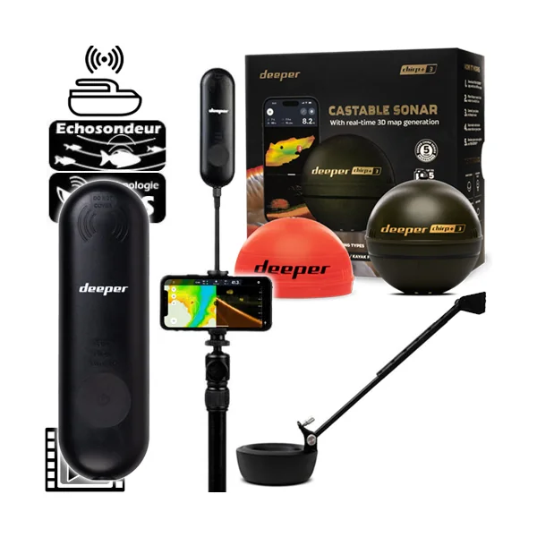 Kit Sondeur Bateau Amorceur Deeper CHIRP+ 3D + Amplificateur Wifi