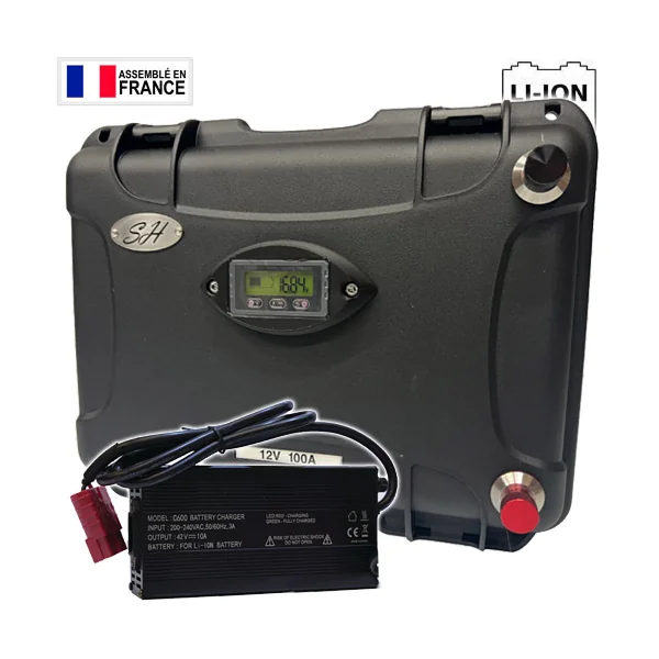 Batterie SH Lithium LifePo4 Etanche 12V 100A + Chargeur 10A