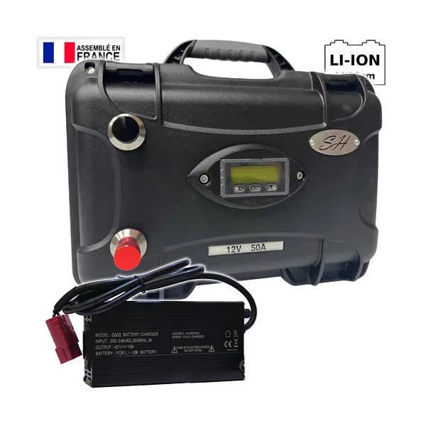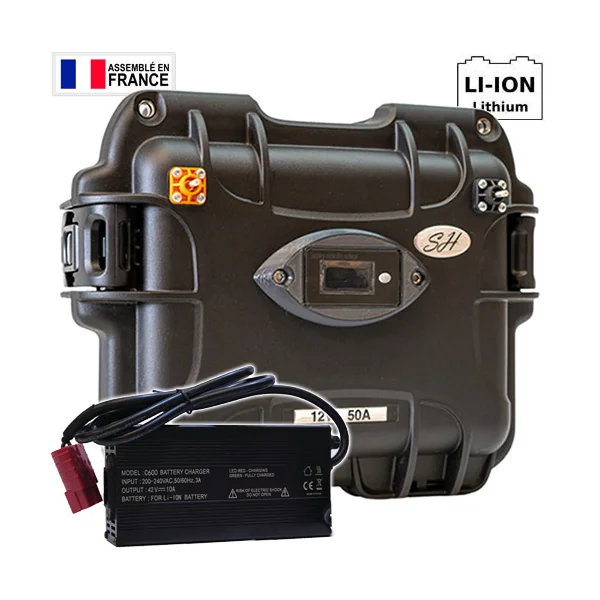 Batterie SH Lithium LifePo4 Etanche 12V 50A + Chargeur 5A