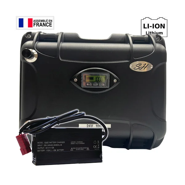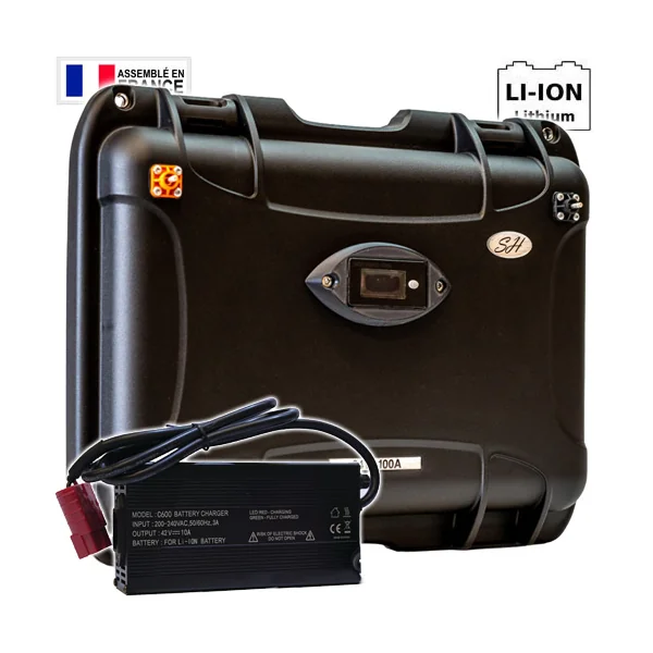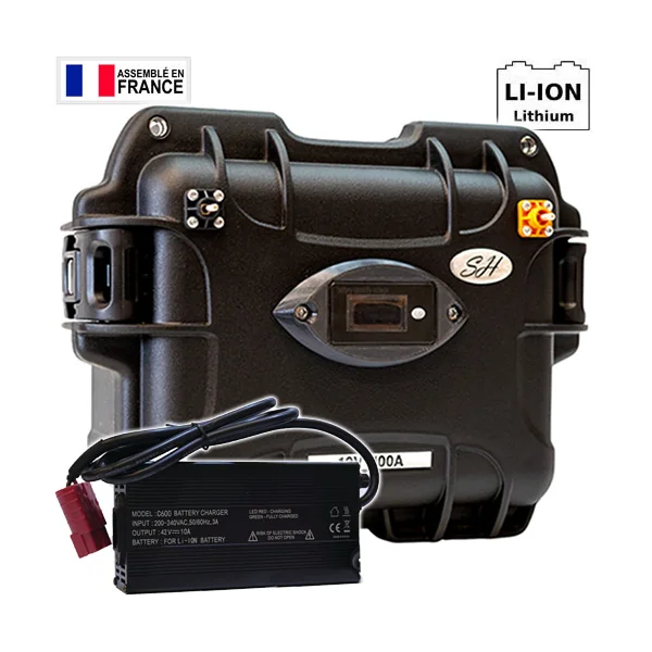 Batterie SH Lithium Ion Etanche 29.4V 100A 7S + Chargeur 10A