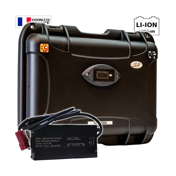 Batterie SH Lithium Ion Etanche 29.4V 150A 7S + Chargeur 10A