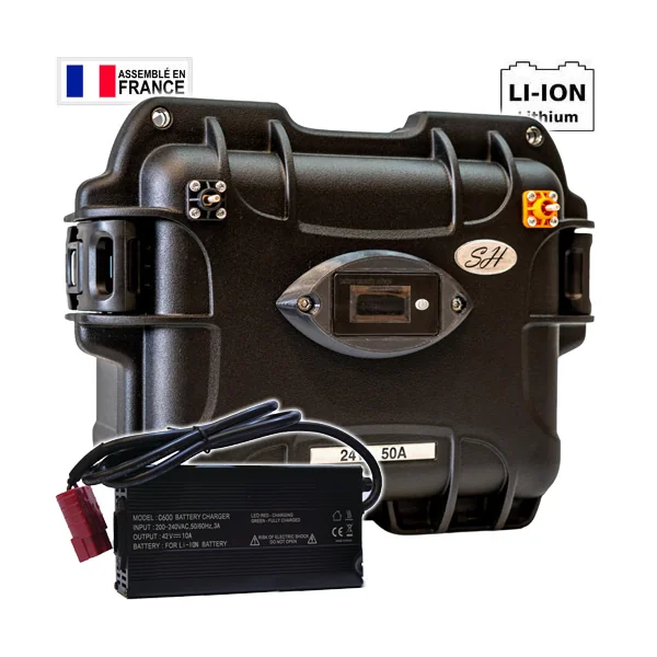 Batterie SH Lithium LifePo4 Etanche 24V 50A + Chargeur 5A