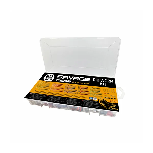 Kit Leurres souples Savage Gear Rib Worm 60 pièces