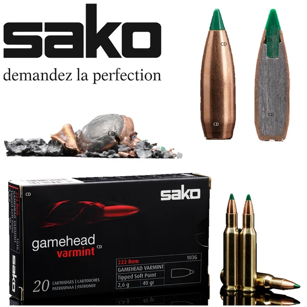 Balles Sako Gamehead Varmint 222 Rem 40 Grains Par 20