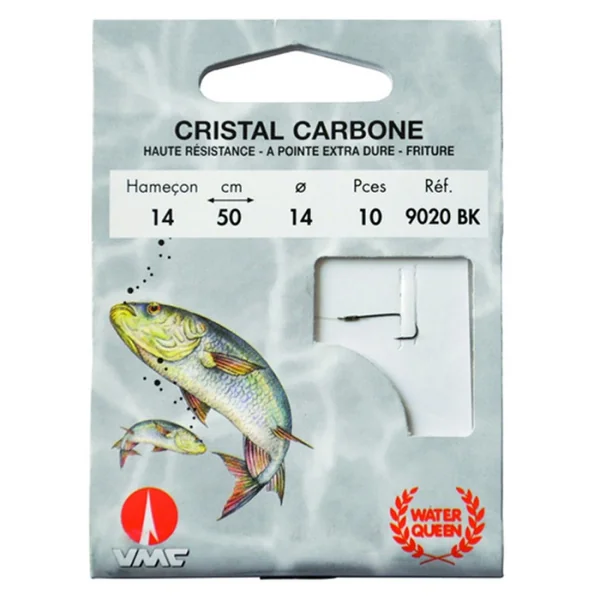 10 Hameçons montés Water Queen cristal carbone 9020 BK 50 cm