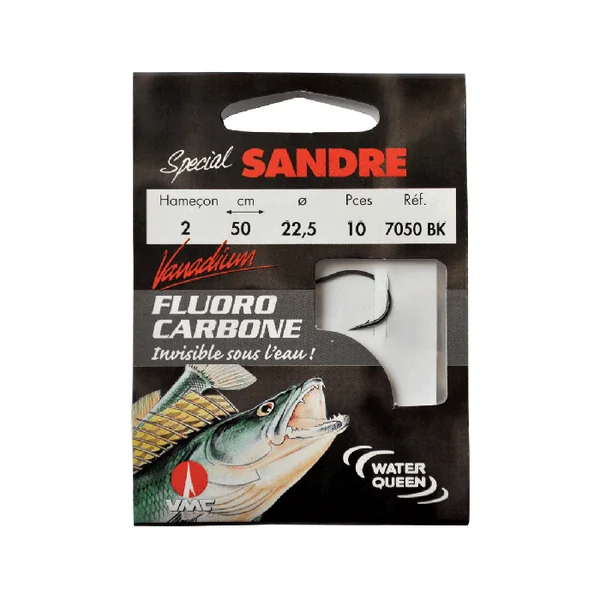 10 Hameçons montés Water Queen fluorocarbone spécial sandre 7050 BK 100 cm