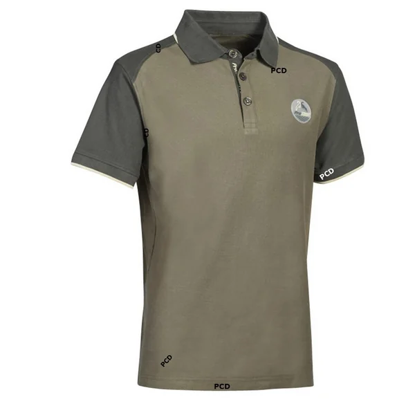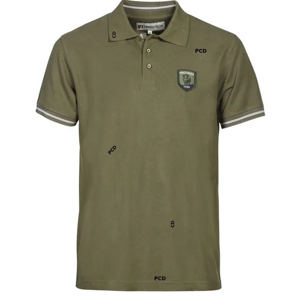 Polo Homme Percussion Manche Courtes Brodé Sanglier Kaki