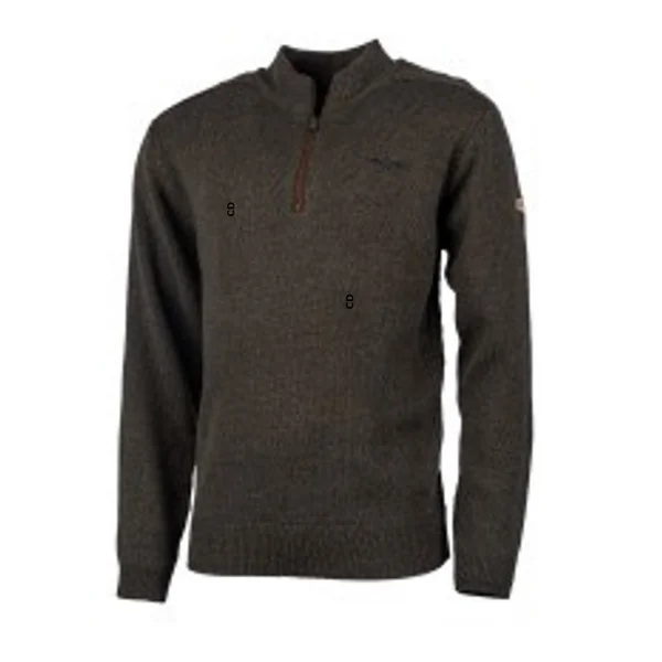 Pull Col Zippé En Laine Homme Treeland Marron Broderie Sanglier T904