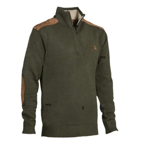 Pull Homme Pro Hunt Col Zippé Fox Kaki
