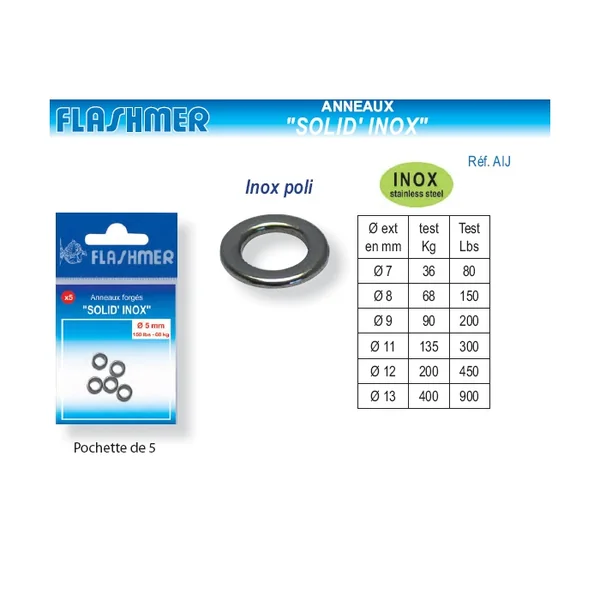 Anneaux Solid Inox 12 mm X 5 Anneaux Solid Inox 11 mm X 5