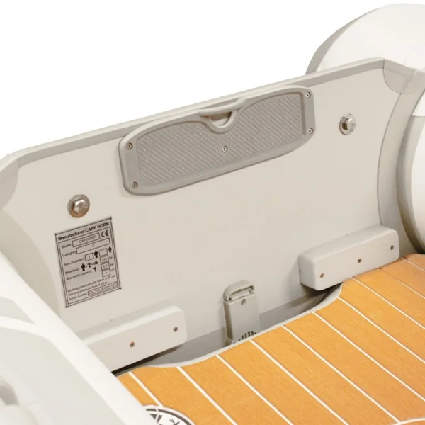 L’annexe Cape Horn Ultimate White est équipée d’un tableau arrière de grande qualité, spécialement conçu pour résister aux contraintes mécaniques liées à l’utilisation de moteurs, qu’ils soient thermiques ou électriques. Sa structure renforcée offre une excellente solidité, capable d’absorber les chocs.