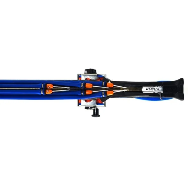 La tête ouverte triple sandows bénéficie d’un design hydrodynamique élégant qui permet d’orienter l’arbalète facilement et ce dans n’importe quelle direction. Les trois sandows sont placés à différentes hauteurs, ce qui contribue encore à la réactivité de l’arbalète et à l’absence de vibration et de friction entre eux. Un système de lestage en inox permet d’obtenir un équilibre précis.
