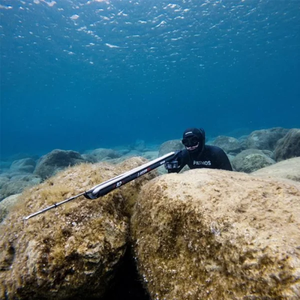 Le fusil de chasse sous-marine est équipé d’une nouvelle tête ouverte, permettant aux sandows de fonctionner de manière parallèle avec le tube et l’arbalète, ce qui décuple la puissance des sandows pour des performances optimales. Le harpon est doté d’une flèche en acier inoxydable Sandvik de 6,50 mm de diamètre, de rigidité moyenne, avec un seul ardillon et une pointe à trois côtés. Associé aux nouveaux obus de nylon colorés, il assure une précision parfaite sous l’eau. Le fusil de chasse sous-marine est également équipé d’un sandow circulaire TNT gris de Ø18 mm, offrant une puissance extrême pour des tirs précis.