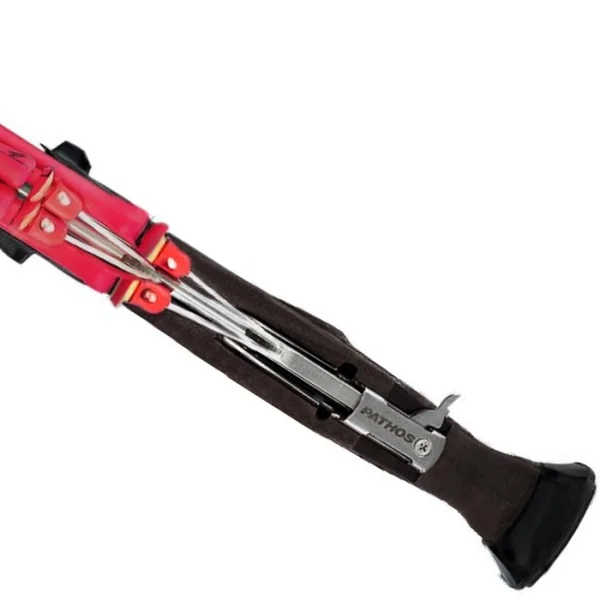 La nouvelle tête ouverte permet aux sandows de fonctionner parallèlement au tube et à l’arbalète, offrant une puissance de tir maximale. Le harpon est équipé d’une flèche en acier inoxydable Sandvik de 6,50 mm de diamètre, garantissant une précision exceptionnelle grâce à sa pointe à trois côtés.