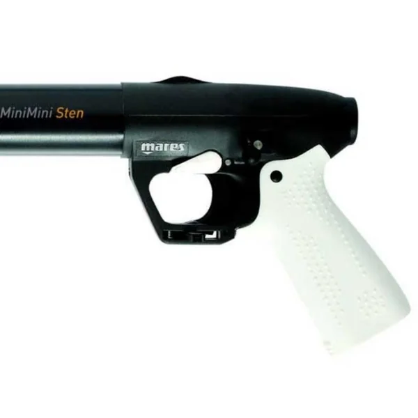 La poignée blanche, facilement visible sous l’eau, aide le chasseur à localiser rapidement son équipement, même dans des conditions de faible luminosité.