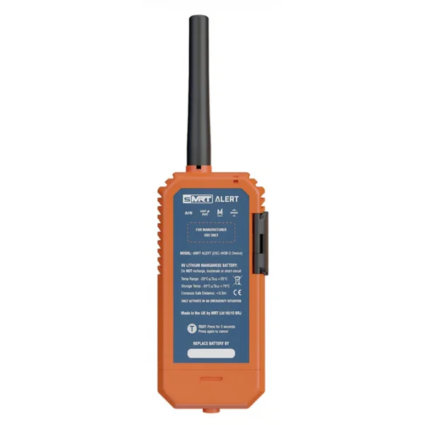 Son déclenchement peut être manuel ou automatique au contact de l’eau, grâce au système « True Water Activation », qui s’active après plus de deux secondes de contact avec l’eau. En conformité avec le règlement européen ECC/DEC/ (22)02, la sMRT ALERT est un équipement de Classe M qui allie fiabilité, robustesse et modernité.