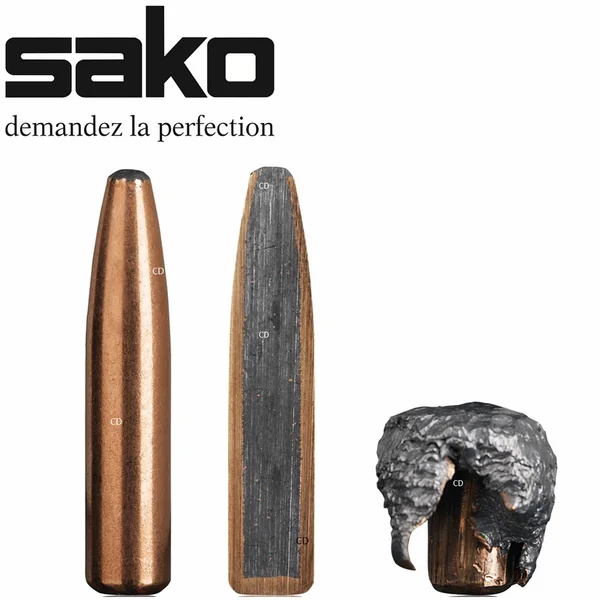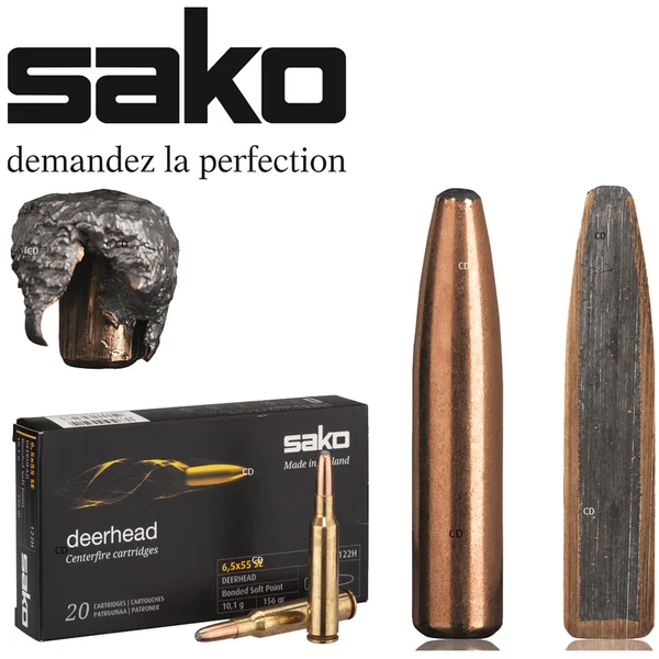 Deerhead est une balle conçue pour accepter une déformation extrême sans séparation de la chemise du noyau de plomb, de marque Sako.