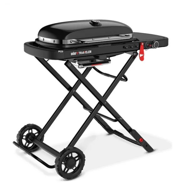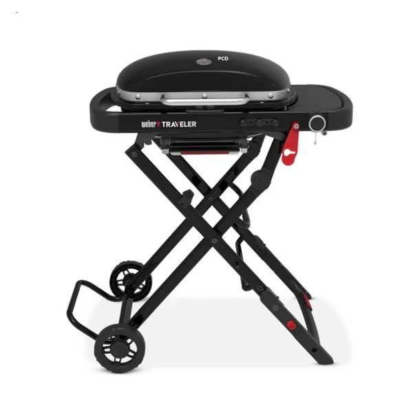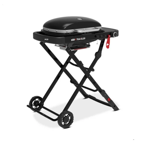 La plage de température est variable, de basse à élevée pour permettre plusieurs types de cuissons. Le verrouillage automatique du couvercle est se déclenche automatiquement lorsque le Barbecue Weber Traveler est replié.