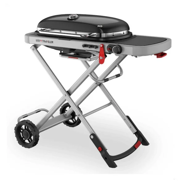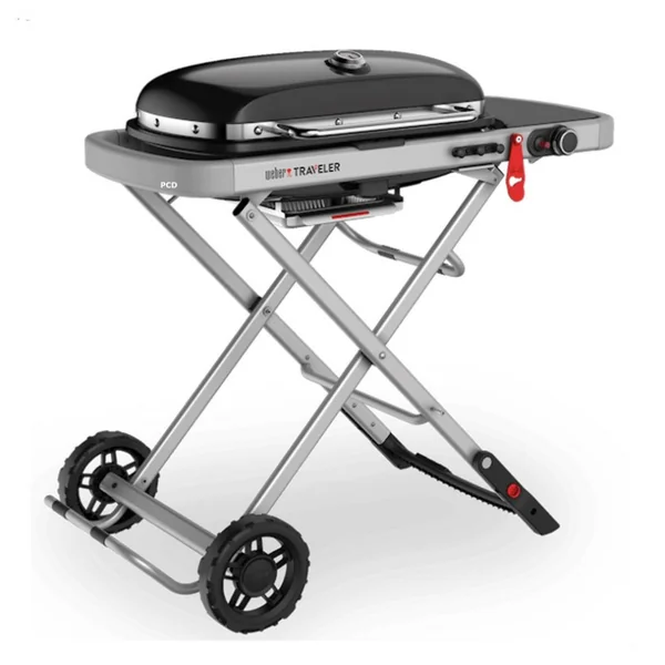 La plage de température est variable, de basse à élevée pour permettre plusieurs types de cuissons. Le verrouillage automatique du couvercle est se déclenche automatiquement lorsque le Barbecue Weber Traveler est replié.
