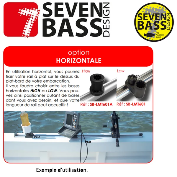 En utilisation horizontale, vous pourrez aisément fixer votre rail à plat sur le dessus du plat-bord de votre embarcation.