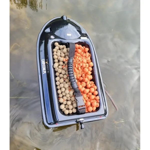 Le bateau dispose d’une grande chambre à amorce de 3 kg avec deux volets de vidange. La chambre est divisée par une cloison amovible, les volets de vidange peuvent être ouverts individuellement ou ensemble.