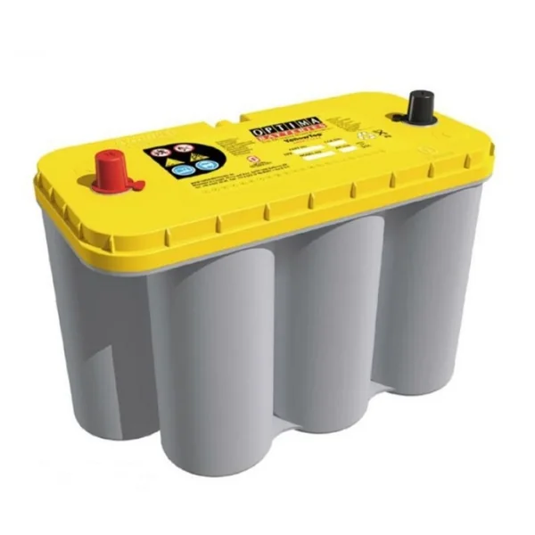 Les batteries OPTIMA sont des batteries très avancées techniquement : il s’agit d’une batterie AGM (l’acide est imbibé dans la fibre de verre) avec des éléments enroulés (technologie Spiralcell). Cette batterie est sans entretien, 100% étanche (elle ne contient pas d’acide liquide), très résistante aux vibrations et surtout elle bénéficie d’un ratio volume / poids / puissance exceptionnel pour une batterie au plomb.
