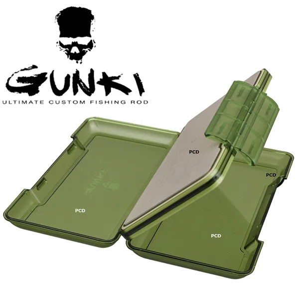 Boite de marque Gunki, transparente et réversible, qui donne accès à deux compartiments recouverts d’une plaque en EVA haute densité (fendue par quatorze rangées, espacées tous les 6mm) pour accueillir vos cuillers, petits leurres, micro têtes plombées…etc.