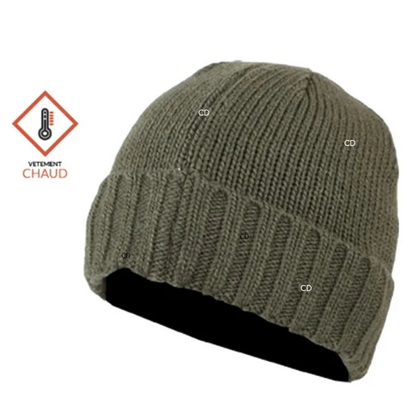 Bonnet tricoté laine, doublure polaire Thinsulate.