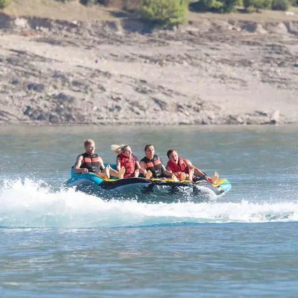 Grâce à sa construction professionnelle de haute qualité — PVC renforcé, fond en tarpaulin épais et housse en nylon double couche 840D — le Just Fun 4 supporte sans difficulté les conditions exigeantes de la location quotidienne. Son large espace d’assise et ses accoudoirs individuels intégrés garantissent une expérience agréable et sécurisée pour chaque passager.
