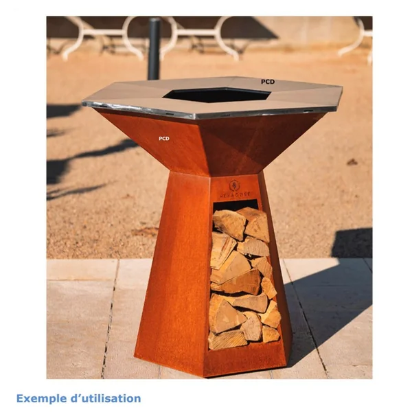 Avec ce braséro plancha d’un diamètre de 105cm vous pourrez cuisiner pour 15 à 20 personnes, et ainsi vivre un moment d’exception autour de votre bel objet Hexagone en acier corten.