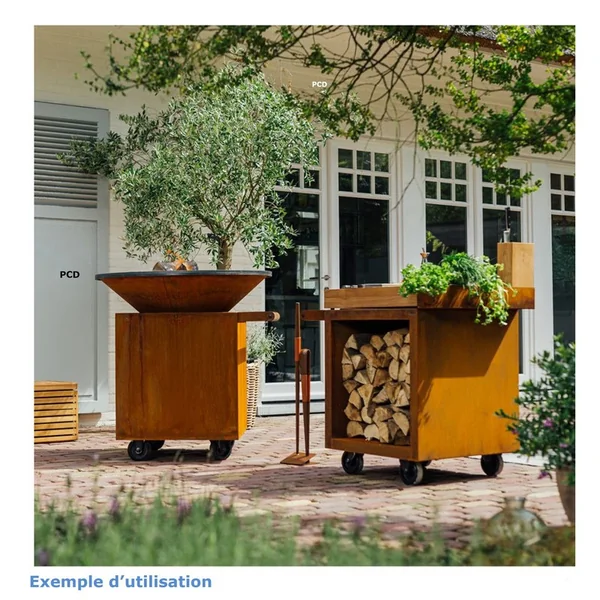 Braséro Plancha OFYR Classic Corten 100 Pro avec housse incluse.