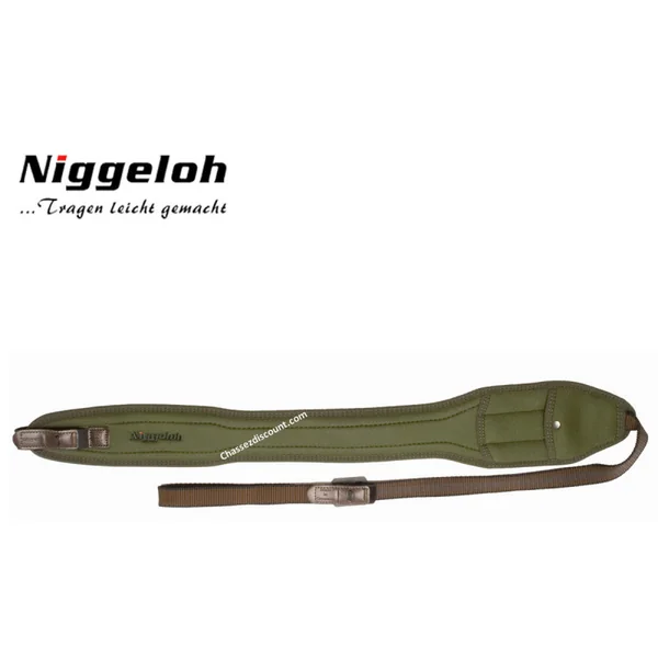 BRETELLES NEOPRENE CARABINE + ETUI NIGGELOH : Caractéristiques : -Bretelle en néoprène pour carabine, -Etui à cartouches, -Attaches rapide. -Coloris : Vert.