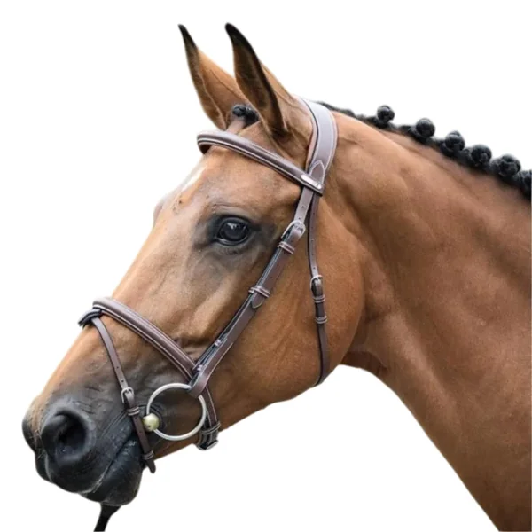 Issu de la Collection One, le bridon London est un produit essentiel, un basique intemporel. Le frontal et la muserolle sont fabriqués dans un cuir légèrement carré et bombé, l’ensemble du bridon est rehaussé de surpiqûres blanches. Hormis les montants, toutes les autres parties de ce modèle sont doublées d’un cuir de couleur tabac pour le modèle noisette. Un noseband amovible est rattaché à la muserolle. La têtière est légèrement anatomique pour apporter plus de confort au cheval. La Collection One est une gamme de cuirs composée de produits pour une utilisation au quotidien, au look chic et épuré. C’est une gamme variée dans laquelle on retrouve une grande variété de produits techniques: bridons, enrênements et accessoires (gogues, gogues commandés, martingales et sangles) Elle propose des tarifs adaptés, dans un rapport qualité prix optimal et s’adresse donc à tous les cavaliers. La collection One est une gamme qui va à l’essentiel, toujours dans l’esprit d »une fabrication Jump’in de qualité, 100% made with Savoir-faire.