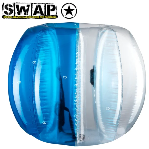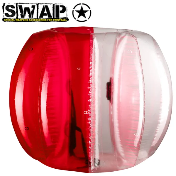 BUBBLE FOOT ENFANT SWAP PAR 2 :Caractéristiques :-Une activité fun à proposer dès cette saison dans votre parc de loisirs, camping !-Le kit Swap Bubble Foot est composé d’une grande bulle gonflable rouge et une autre bleue pour différencier les équipes entre elles.-Cette activité se pratique avec les mêmes règles que le football à la seule exception que le contact est autorisé, voir fortement conseillé pour que l’activité soit encore plus fun.-Une activité à proposer sur une pelouse ou du sable.-Les temps de jeu doivent être courts.-Nous conseillons aux joueurs de faire des pauses toutes les 10 ou 15 minutes.-Les bulles sont fournies avec un harnais de maintien avec des sangles au niveau des épaules renforcées avec de la mousse pour assurer plus de confort à l’utilisateur.-Une sangle autour de la taille permet au joueur de ne faire plus qu’un avec la bulle.-Des poignées placées devant l’utilisateur permettent de le maintenir dans une position confortable lors des collisions ou autres roulades.-La paroi intérieure en PVC remplace les cordes pour une meilleure visibilité.*Caractéristiques techniques :-Épaisseur du PVC : 0,5mm.-Répond à la norme matériaux PVC EN71-3.-Diamètre extérieur : 110cm.-Diamètre intérieur : 35cm.-Livré avec un kit de réparation composé de 3 patchs de PVC transparent et un tube de colle de 3g.-Poids (dégonflé) : 3 kg environ.-Hauteur totale : 75cm.*Taille unique.*DANGEREUX ! Respecter les précautions demploi.