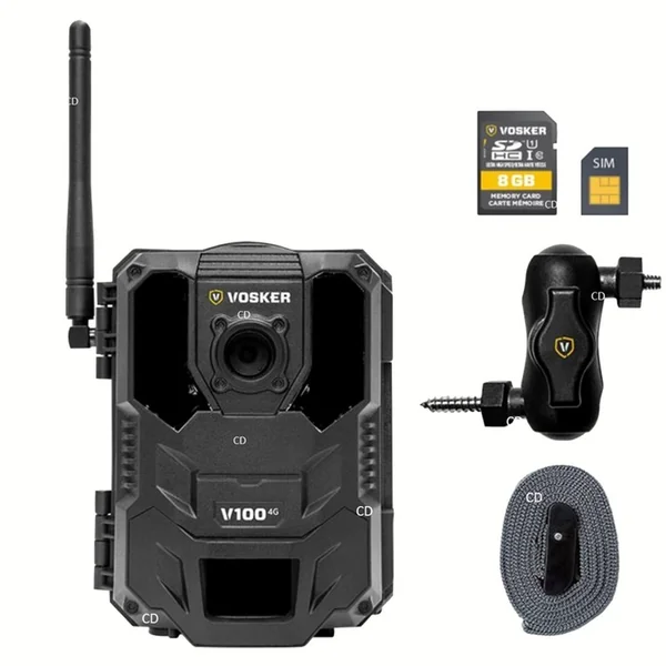 Chaque caméra de sécurité mobile VOSKER est accompagnée d’une carte SIM préactivée, d’une carte SD et d’un support de fixation.
