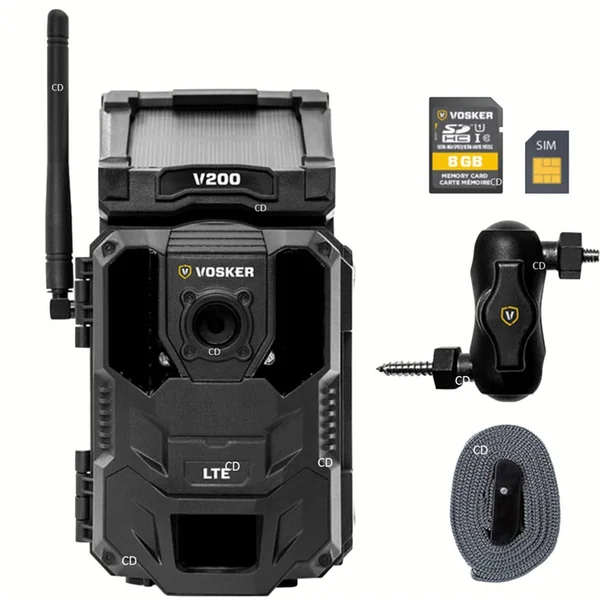 Configuration rapide : Chaque caméra de sécurité mobile Vosker est accompagnée d’une carte SIM pré-activée, d’une carte SD et d’un support de fixation.