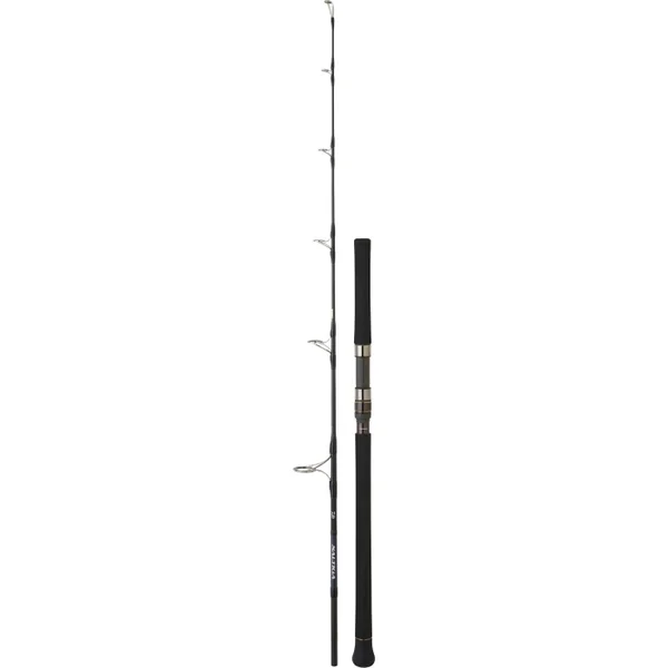 L’atout de cette canne jigging est son encombrement réduit (109 cm). Grâce à son emmanchement V-Joint Alpha, nouvelle technologie Daiwa visant à optimiser la courbure de la canne à la compression du blank en combat ou en lancer, cette canne « format réduit » une fois désemmanchée n’en est pas moins puissante : 250-300g. De quoi cibler les sérioles en Méditérarranée, les carangues en Afrique de l’Ouest ou encore les pêches moyennes à Madagascar. Cette canne jig possède une action très progressive, confortable pour le pêcheur lors des animations rapides mais aussi pour contrer le départ des poissons les plus puissants. Frein recommandé : 7 à 8 kg (maxi 12 kg). Moulinet adapté : Saltiga 20 taille 8000 à 14000.