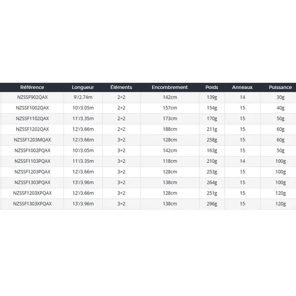 Disponibles en deux éléments pour le Method feeder tout comme en trois éléments pour les pêches plus classiques, en plan d’eau tout comme en rivière , toutes ces cannes sont livrées avec deux quiver tip (compatibles avec les autres modèles N’ZON).
