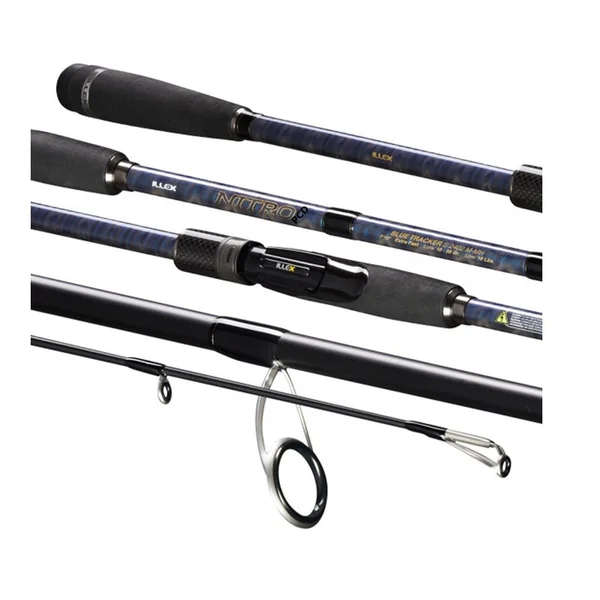 La NITRO S 2402 MH BLUE TRACKER, de marque Illex, est une canne deux brins très polyvalente pour la pêche du bar et du lieu du bord comme en bateau, aux leurres de surface (Bonnie 95, 107 et 128, Riser Bait 008, ChatterBeast 110); et aux poissons nageurs leurres (Water Monitor 95, Stream Ripper 90 et 110, Rerange series), de leurres de type Blade Bait ou casting jig (Runner Blade 90 et 115, Micro Slow Lazy Jig 14 et 24g) et aux leurres souples montés jusqu’à 25g en linéaire ou en traction (Nitro Shad 90 et 120, Nitro Slim Shad 110 et 150, Magic Slim Shad 5 et 7, Dexter Shad 110).