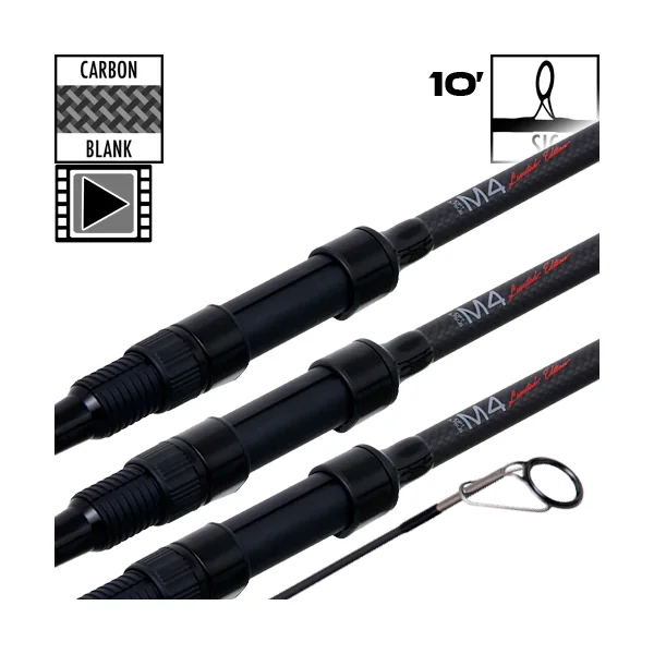 Canne Starbaits M4 Limited Edition 10′ 3.75lbs (les 3)Le blank M4 a permis la capture de milliers de carpes et ce, au travers de toute l’Europe.Pour fêter son 10ème anniversaire, nous vous présentons une canne d’exception en édition limitée et au rapport qualité / prix exceptionnel.Reprenant les mêmes caractéristiques de blank que la désormais célèbre gamme M4, cette série limitée vous offre en plus des qualités techniques, une cosmétique soignée alliant ainsi performance et esthétisme. A noter l’introduction de deux nouveaux modèles : la 13ft 4,00lb dédiée à la pêche à longue distance pour une tarification très accessible et la version 10ft 3,75lb, une canne puissante permettant de venir à bout des poissons les plus puissants (fleuve / rivière / pêche d’obstacle….)