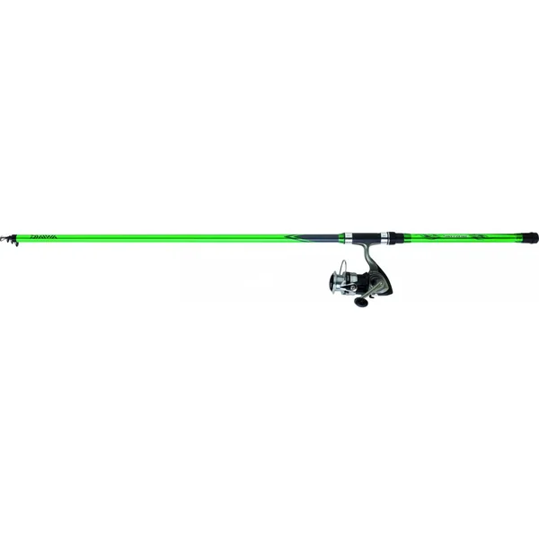 Canne Sweepfire, télescopique, en composite. Moulinet DF, frein avant, 1 roulement, bobine aluminium et doté des technologies Twist Buster, Gyro Spin, Digigear et ABS.