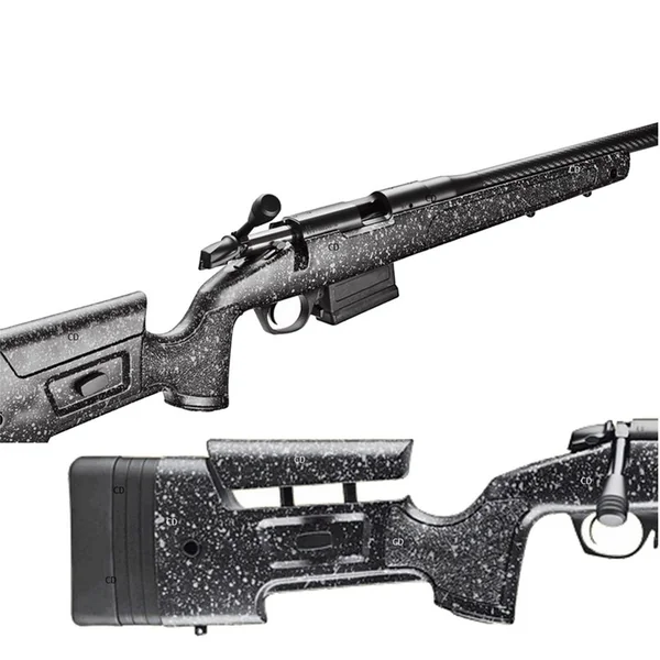 Crosse HMR de Bergara, moulée, avec un mini-châssis, des supports de grenadières encastrés OD intégrés et des supports pivotants, une joue et une longueur de traction réglables.