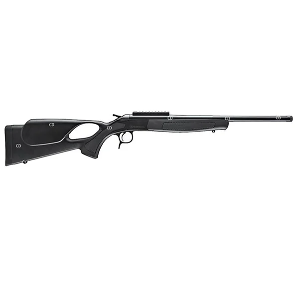Carabine CVA SCOUT TD THUMBHOLE, à canon basculant et armement par chien extérieur, démontable.