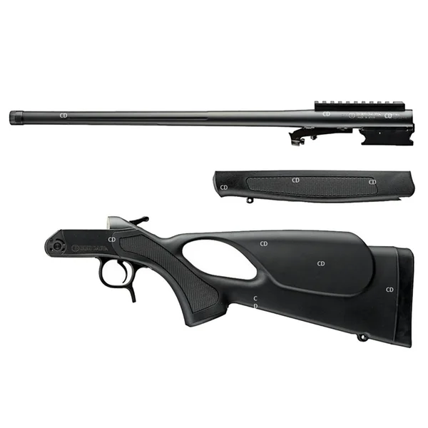 Carabine CVA SCOUT TD THUMBHOLE, à canon basculant et armement par chien extérieur, démontable.