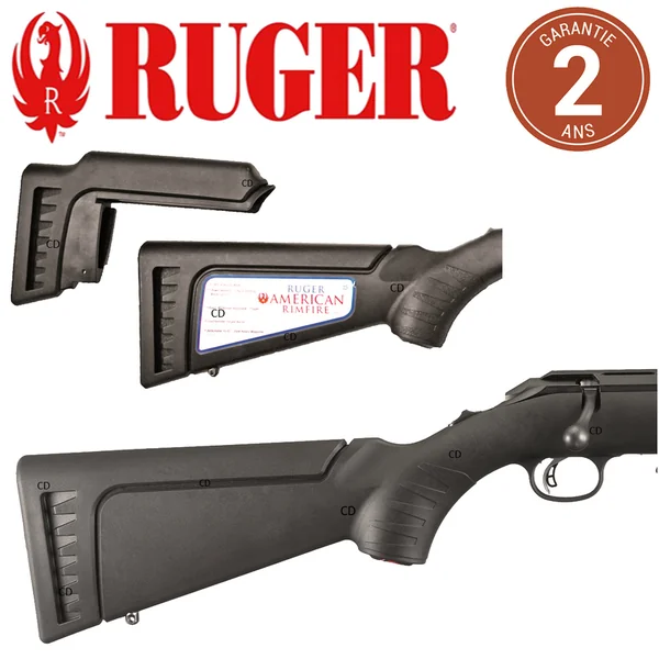 Version Filetée, avec canon de 46cm, de la nouvelle carabine RUGER AMERICAN RIMFIRE, en calibre 22LR, qui dispose de 2 croix interchangeables, pour avoir la possibilité de tirer avec une lunette ou les organes de visée.